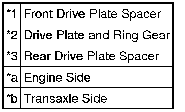DRIVE PLATE AND RING GEAR SUB-ASSEMBLY (for Automatic Transaxle)Install the rear drive plate spacer, drive plate and ring gear sub-assembly, and front drive plate spacer with the 6 bolts.