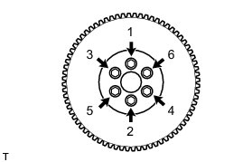 Install and uniformly tighten the 6 bolts in several steps, in the sequence shown in the illustration.