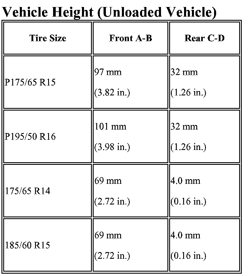 HINT: Bounce the vehicle up and down at the corners to stabilize the suspension before inspecting the vehicle height.