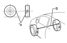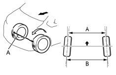 d. Put tread center marks on the rearmost points of the front wheels and measure the distance between the marks (Dimension B).