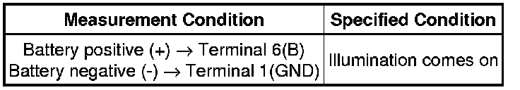 (b) Apply battery voltage to the power window regulator master switch and check that the illumination comes on.