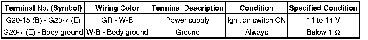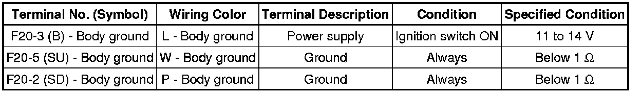 If the result is not as specified, there may be a malfunction in the wire harness.