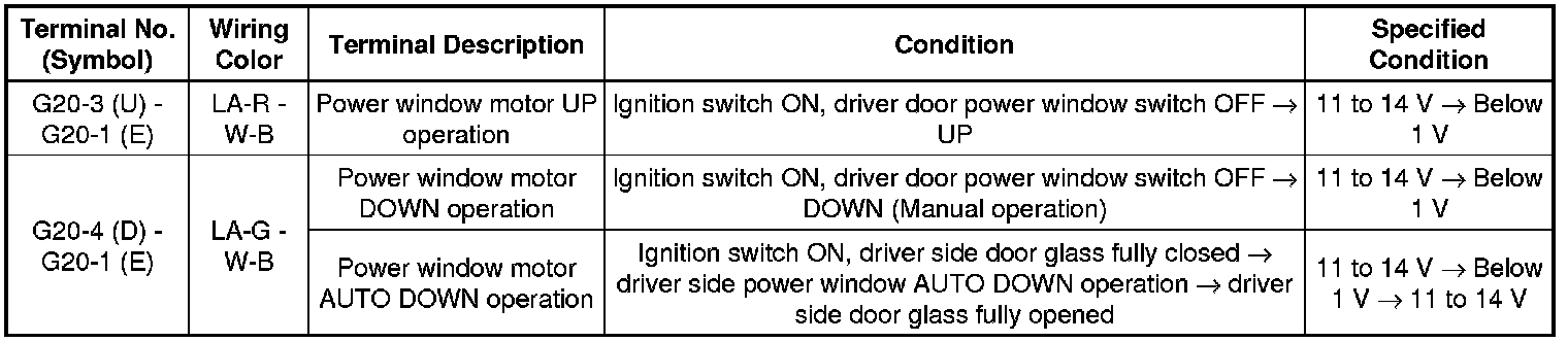 (a) Disconnect the G20 power window regulator master switch assembly connector.