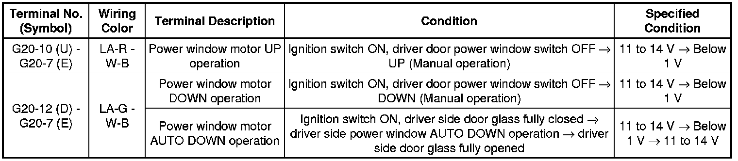 WINDOW / GLASS: POWER WINDOW CONTROL SYSTEM (for Hatchback): TERMINALS OF ECU