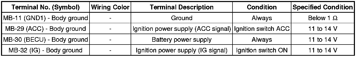 If the result is not as specified, the main body ECU or instrument panel junction block assembly may have a malfunction.