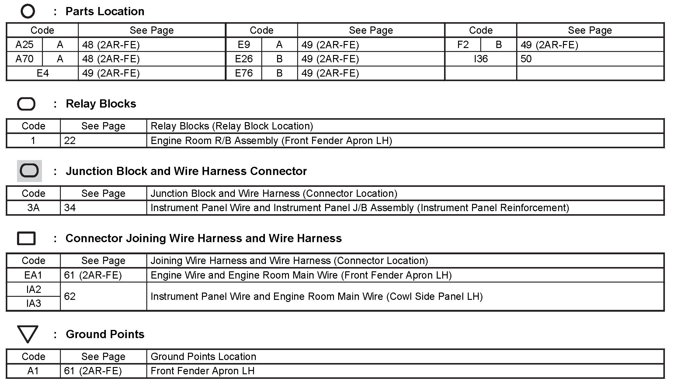 Locations: The locations of components, connectors, ground points, and splices referred to within these diagrams can be found at Vehicle Locations. Locations