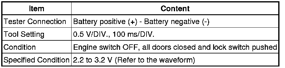 Measure the transmitter battery voltage while pressing the LOCK or UNLOCK switch on the transmitter.