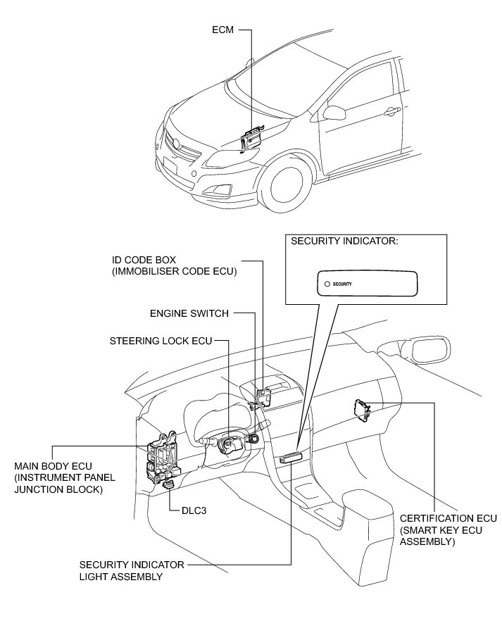 THEFT DETERRENT / KEYLESS ENTRY: ENGINE IMMOBILISER SYSTEM (w/ Smart Key System): PARTS LOCATION; 2013 MY Corolla [07/2012 -]