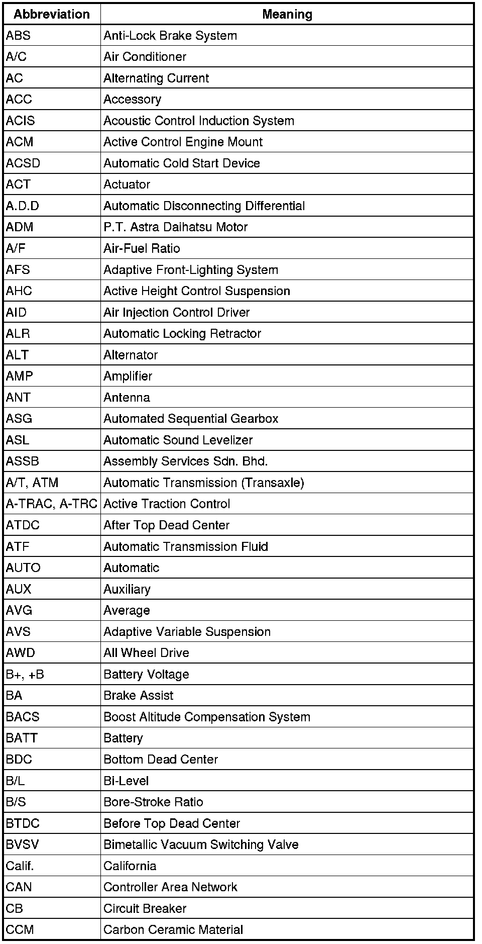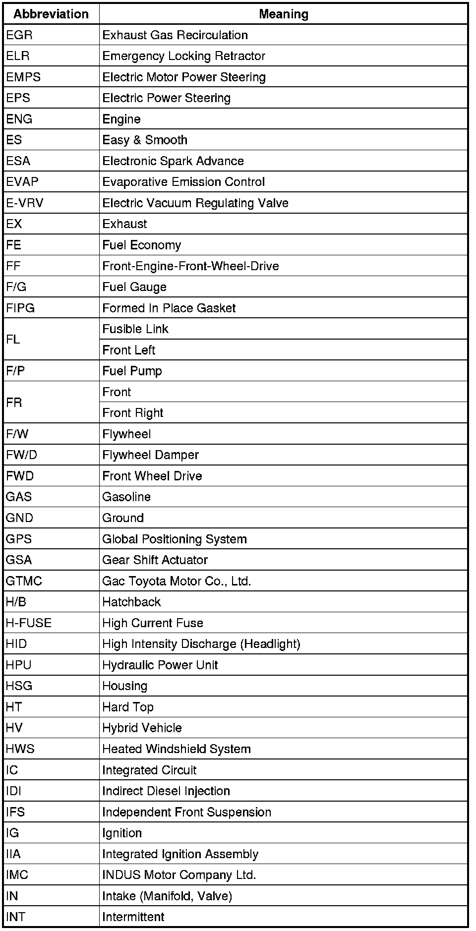 INTRODUCTION: TERMS: ABBREVIATIONS USED IN MANUAL; 2013 MY Corolla [07/2012 -]