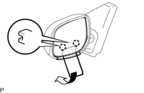 (d) Disengage the 2 guides at the upper part of the outer mirror as shown in the illustration.