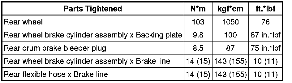 SPECIFICATIONS: BRAKE (REAR): TORQUE SPECIFICATIONS; 2013 MY Corolla [07/2012 -]