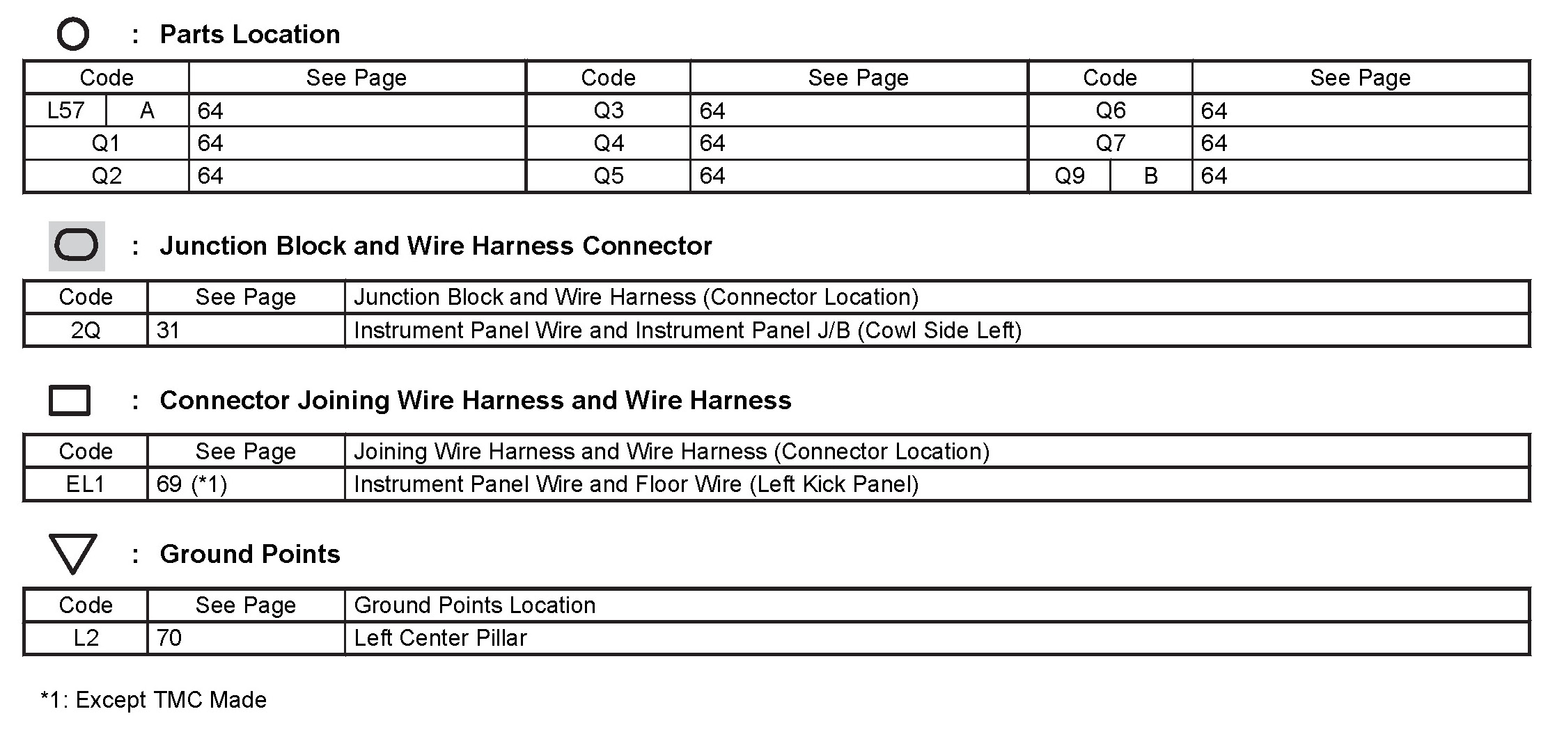 Locations: The locations of components, connectors, ground points, and splices referred to within these diagrams can be found at Vehicle Locations. Locations