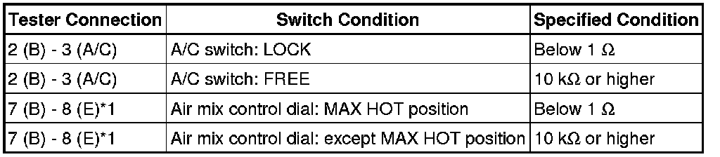 If the result is not as specified, replace the No. 1 heater control (air inlet control switch).