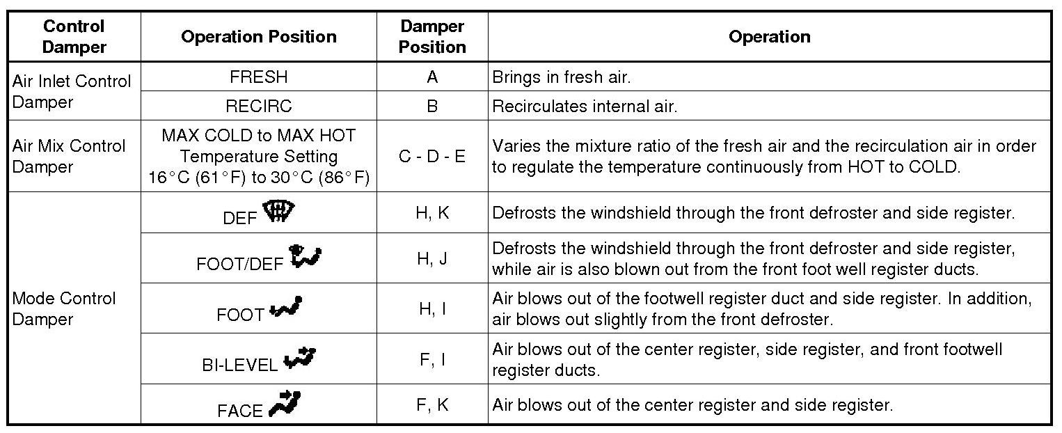 3. MODE POSITION AND DAMPER OPERATION