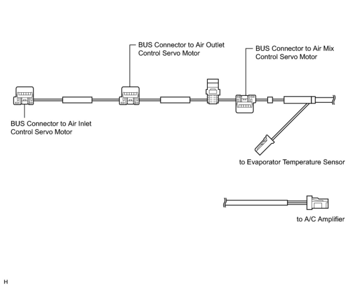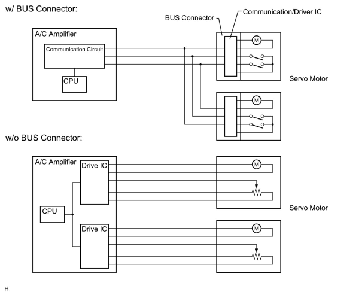 (a) A BUS connector is used in the wire harness connection that connects the servo motor from the A/C amplifier.