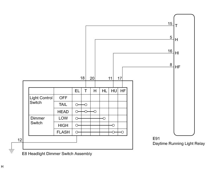 * Dimmer switch HIGH or HIGH FLASH (PASS) signal