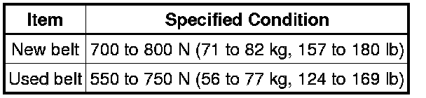 * After installing a new belt, run the engine for approximately 5 minutes and then readjust the tension to (new belt) specifications.