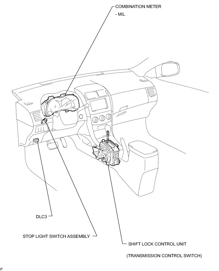 U341E AUTOMATIC TRANSMISSION / TRANSAXLE: AUTOMATIC TRANSAXLE SYSTEM: PARTS LOCATION; 2013 MY Corolla [07/2012 -]