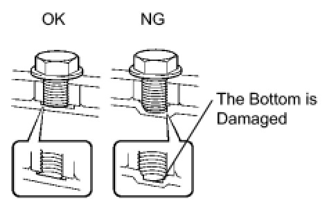 (1) When any marks due to interference are found on the end of the bolt for the torque converter assembly and on the bottom of the bolt hole, replace the bolt and the torque converter assembly.