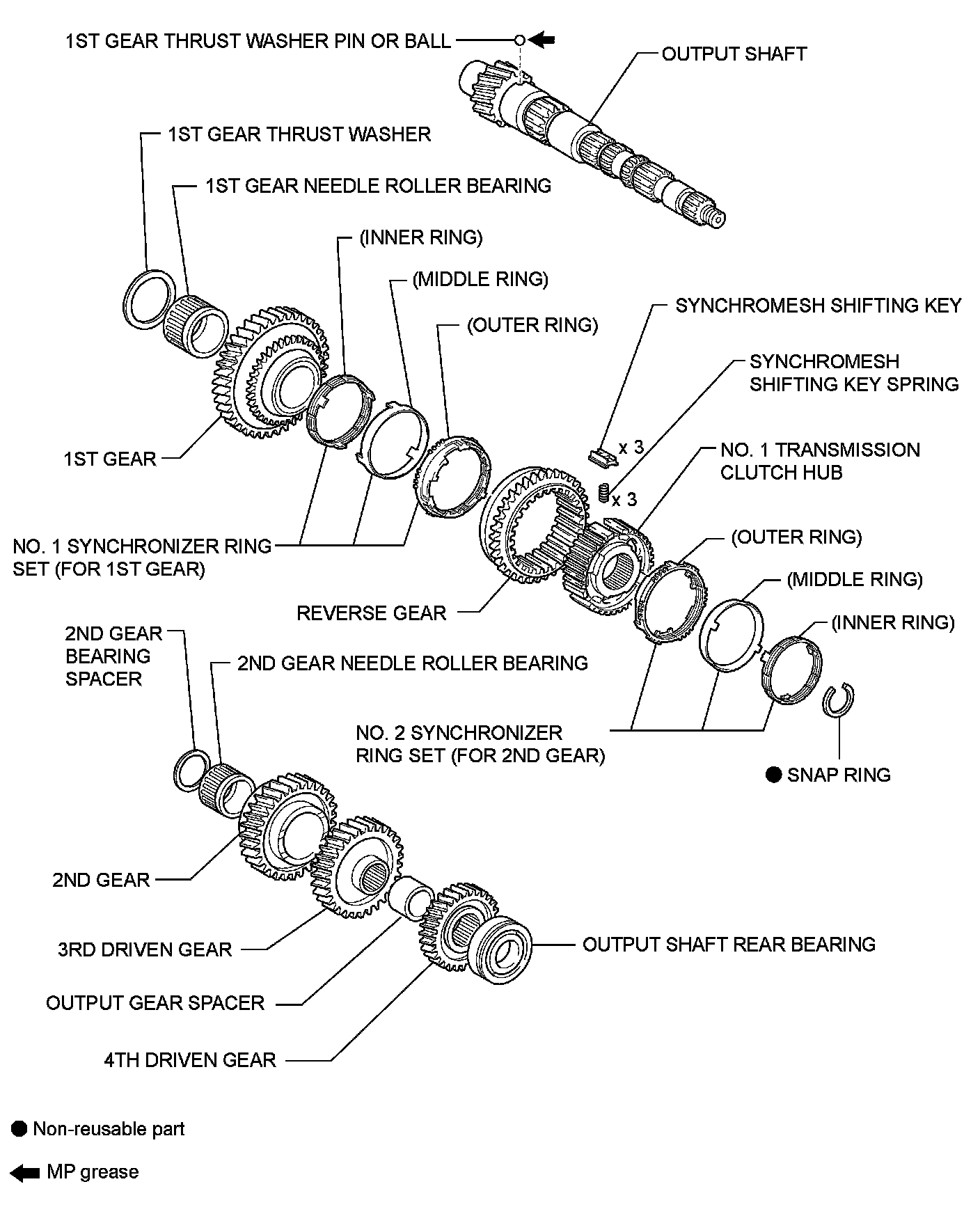 C59 MANUAL TRANSMISSION / TRANSAXLE: OUTPUT SHAFT: COMPONENTS; 2013 MY Corolla [07/2012 -]
