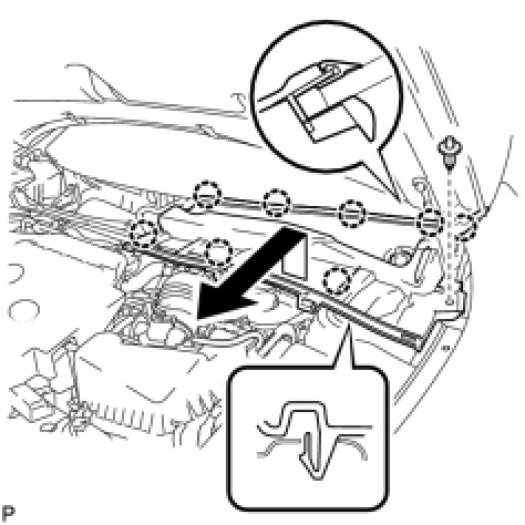 (a) Disengage the 7 clips and remove the hood to cowl top seal.