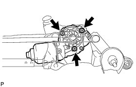 (b) Remove the 3 bolts and the windshield wiper motor assembly.