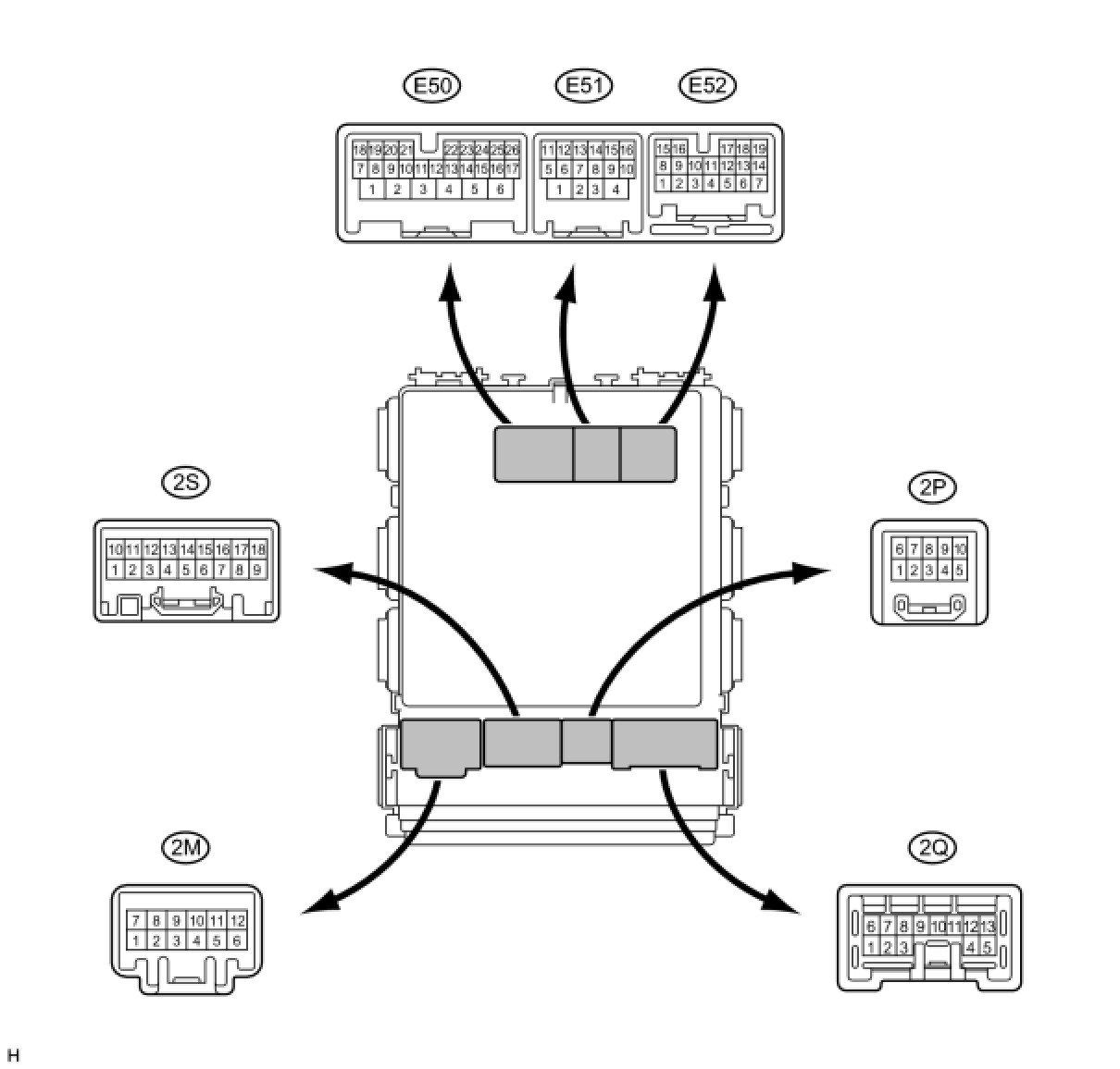 (a) Disconnect the E50, E51, E52, 2E and 2C ECU connectors.