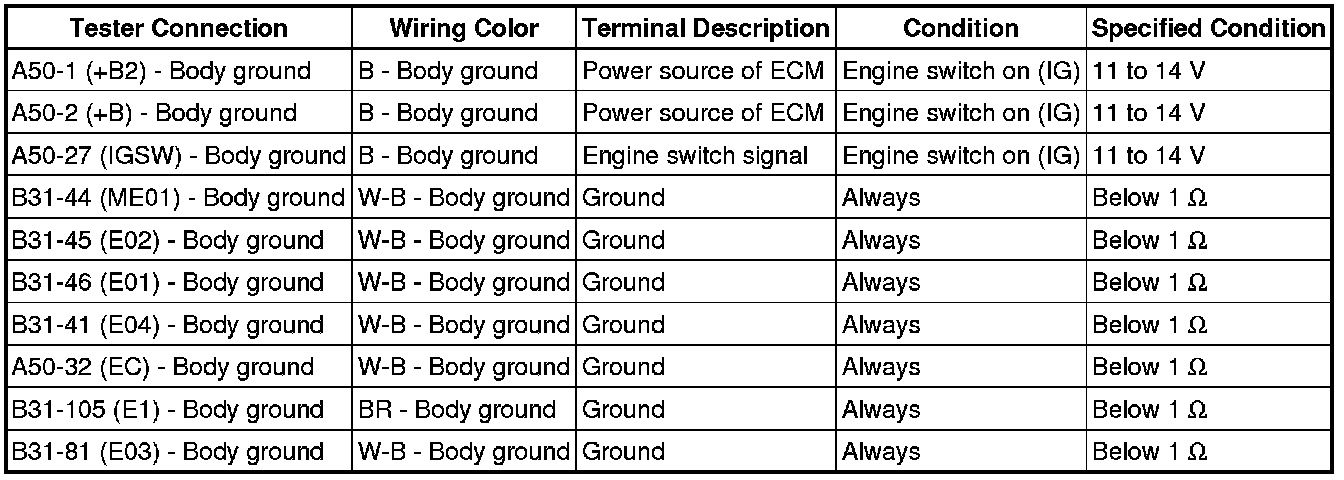 (a) Disconnect the B31 and A50 ECM connectors.
