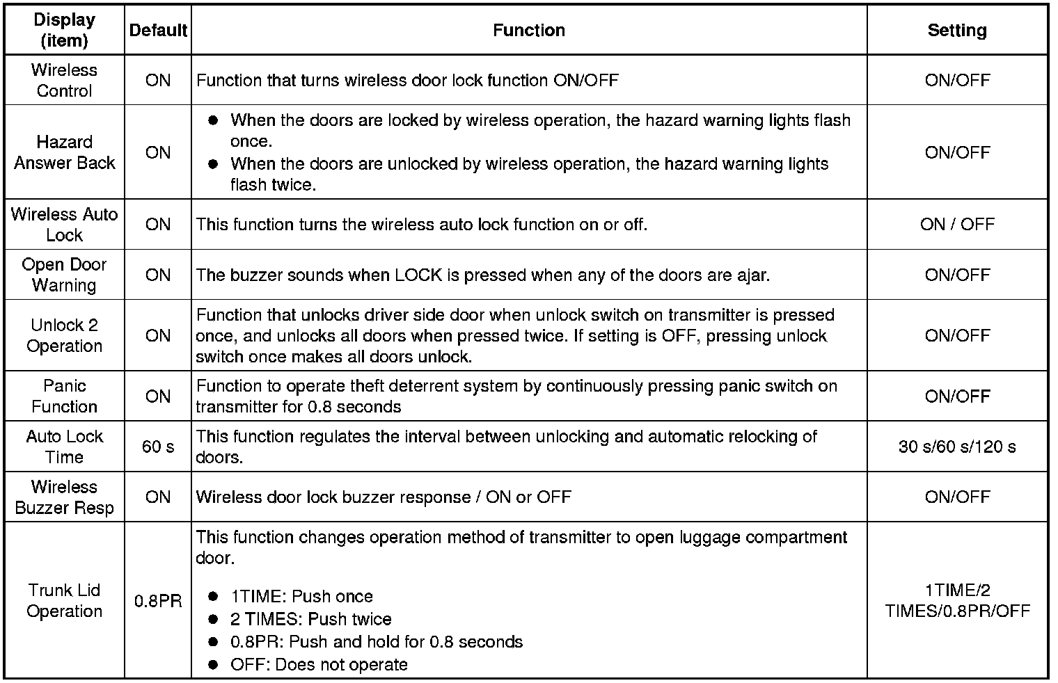 DOOR LOCK: WIRELESS DOOR LOCK CONTROL SYSTEM (w/ Smart Key System): CUSTOMIZE PARAMETERS; 2013 MY Corolla [07/2012 -]