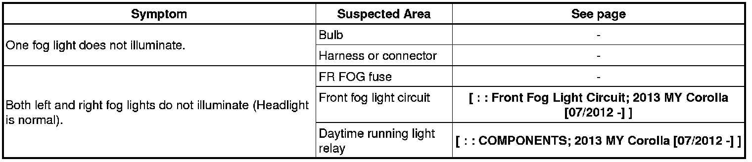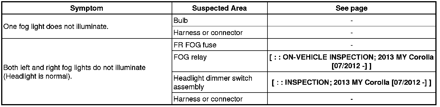 LIGHTING (EXT): LIGHTING SYSTEM: PROBLEM SYMPTOMS TABLE; 2013 MY Corolla [07/2012 -]