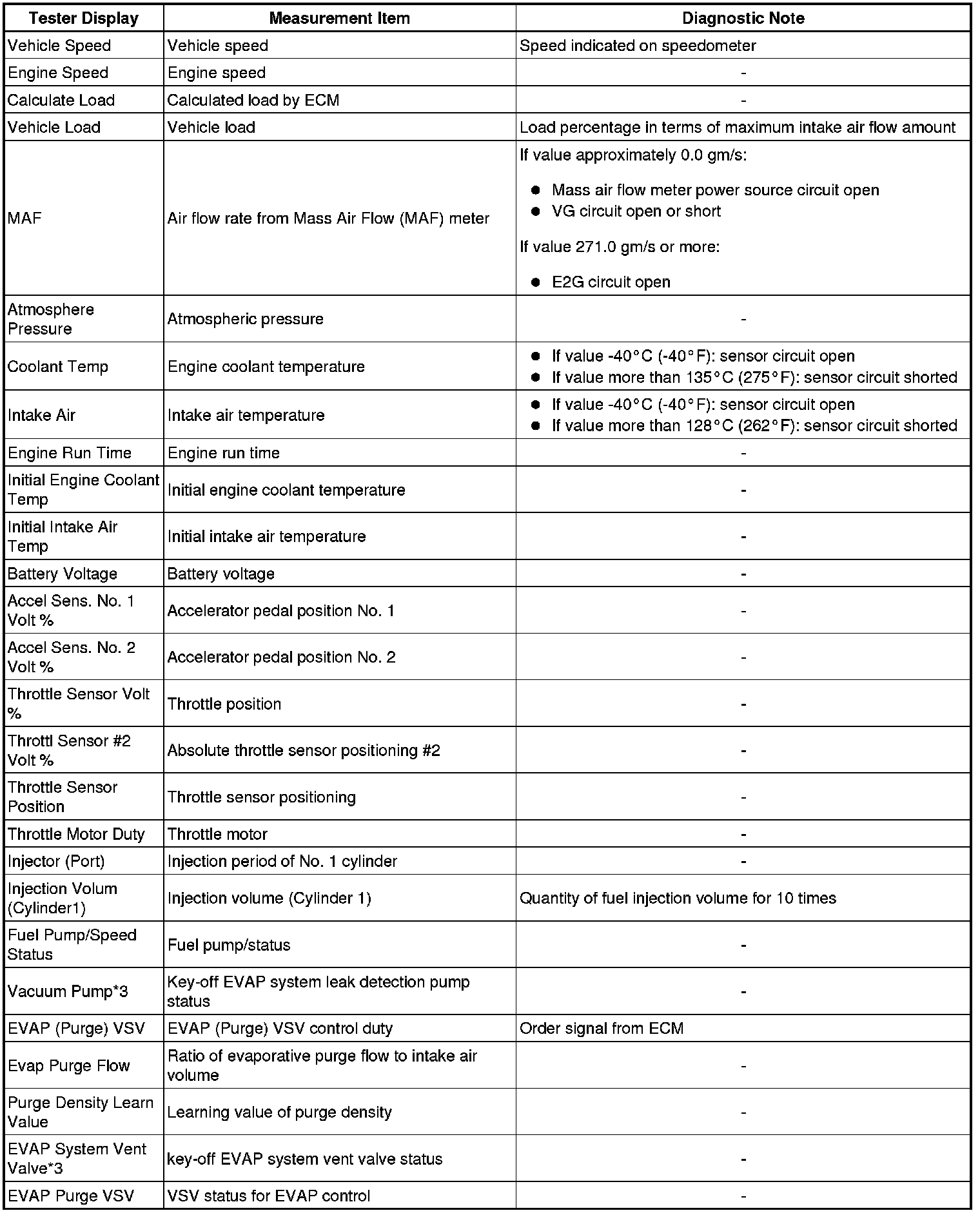 * The ECM records vehicle and driving condition information as freeze frame data the moment a DTC is stored. When troubleshooting, freeze frame data can be helpful in determining whether the vehicle was moving or stationary, whether the engine was warmed up or not, whether the air fuel ratio was lean or rich, as well as other data recorded at the time of a malfunction.