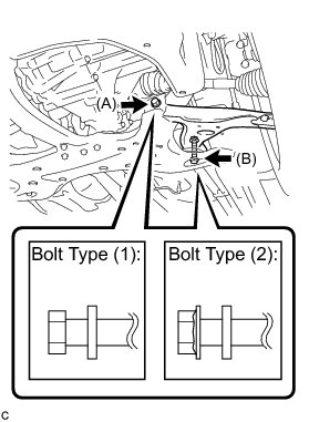 (a) Temporarily install the front lower suspension arm LH to the front suspension crossmember with the 2 bolts and nut.