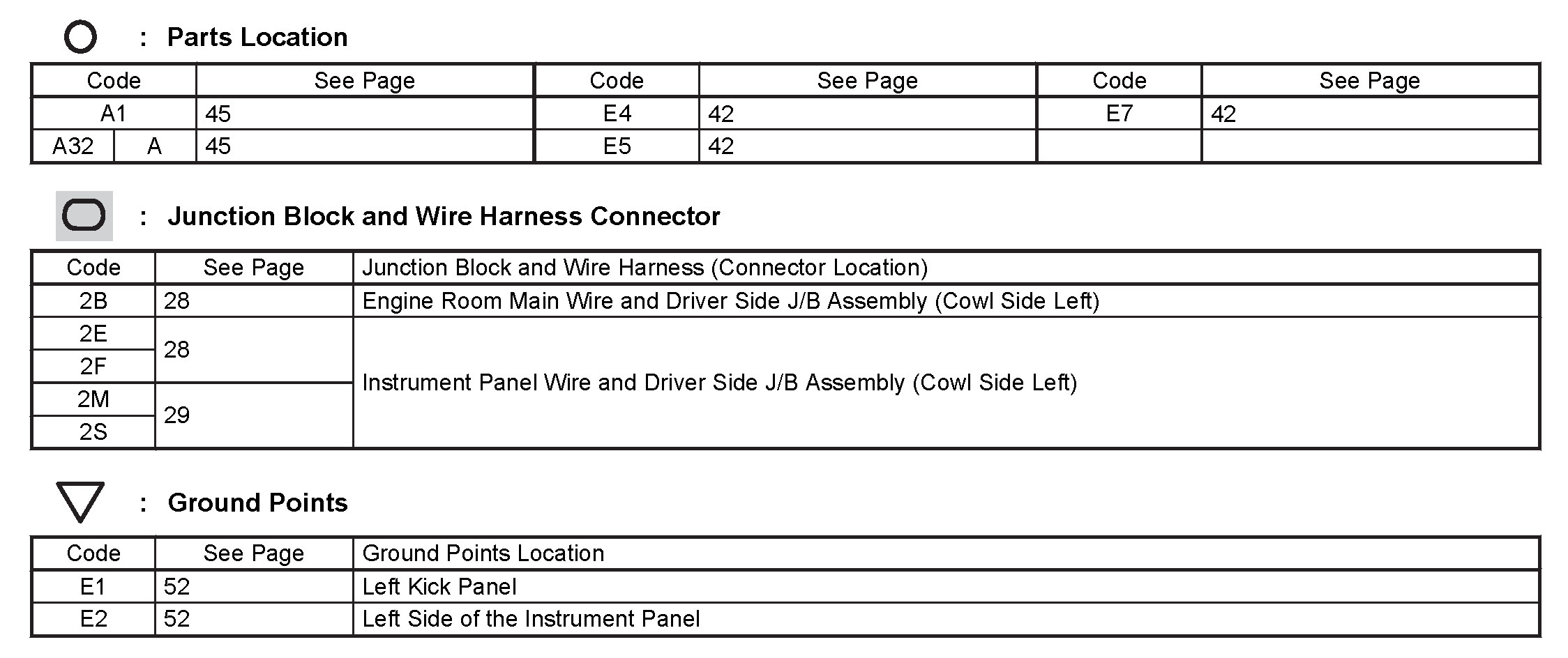 Locations: The locations of components, connectors, ground points, and splices referred to within these diagrams can be found at Vehicle Locations. Locations