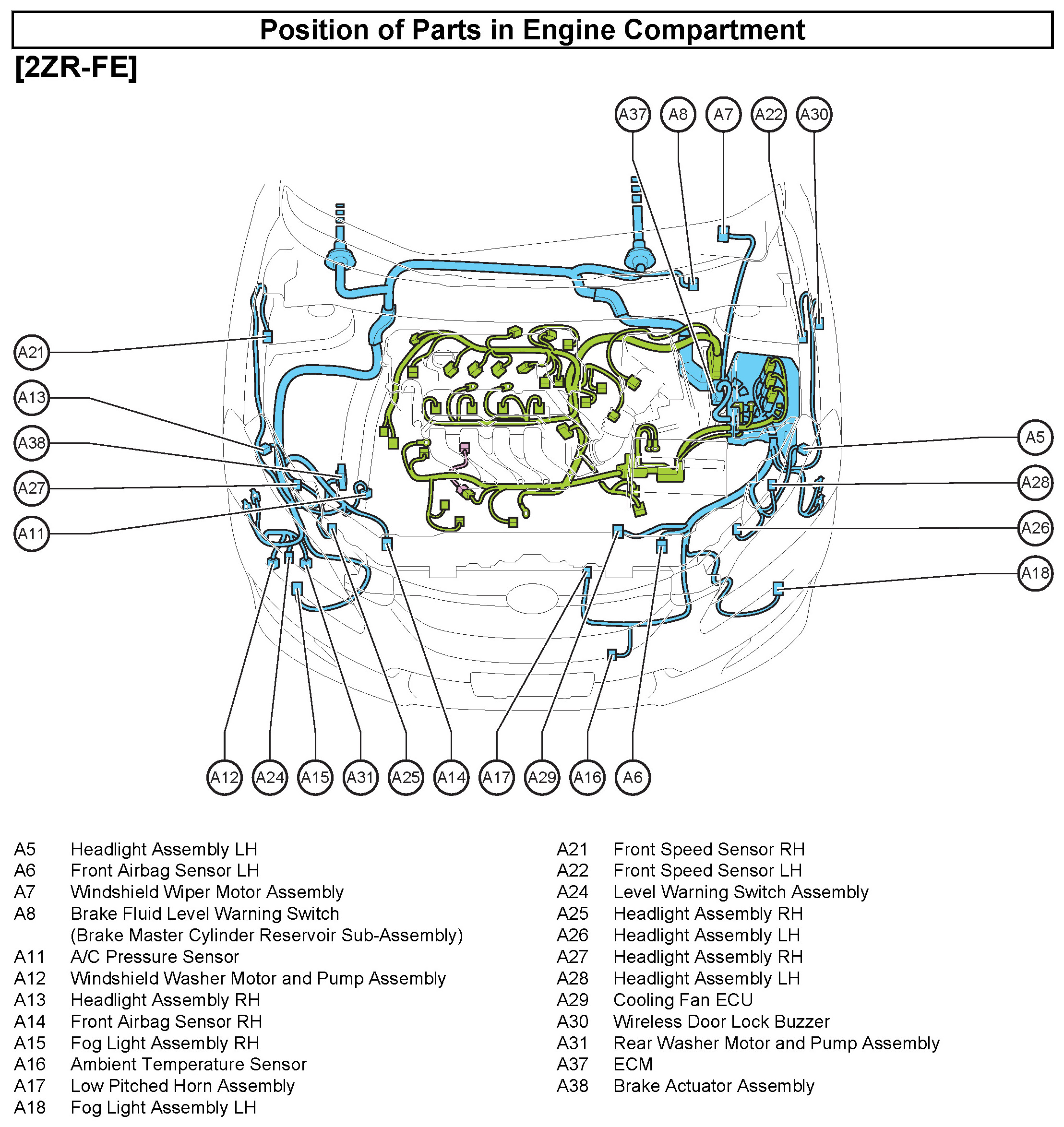 38 - 41 - Position of Parts In Engine Compartment