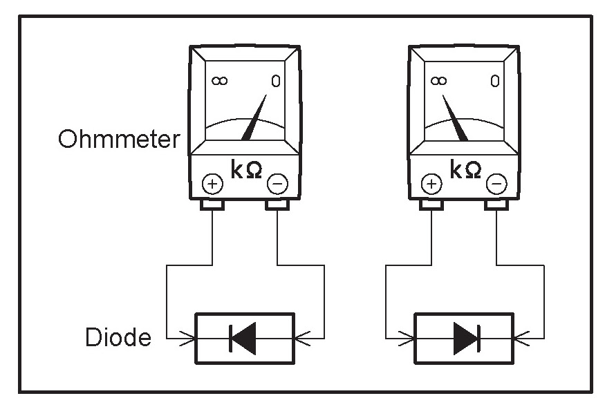 When contacting the negative lead to the diode positive side and the positive lead to the negative side, there should be continuity.