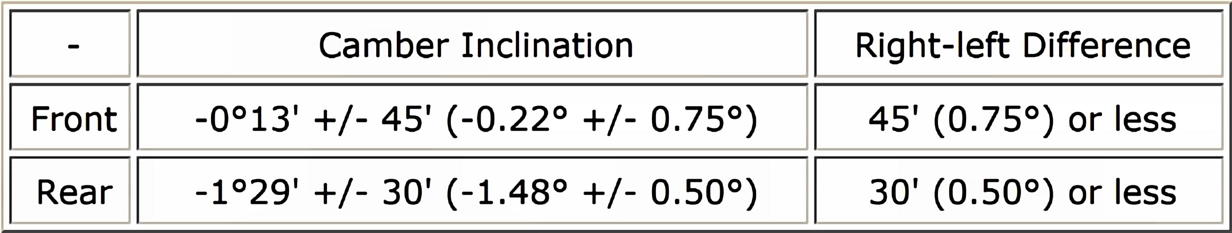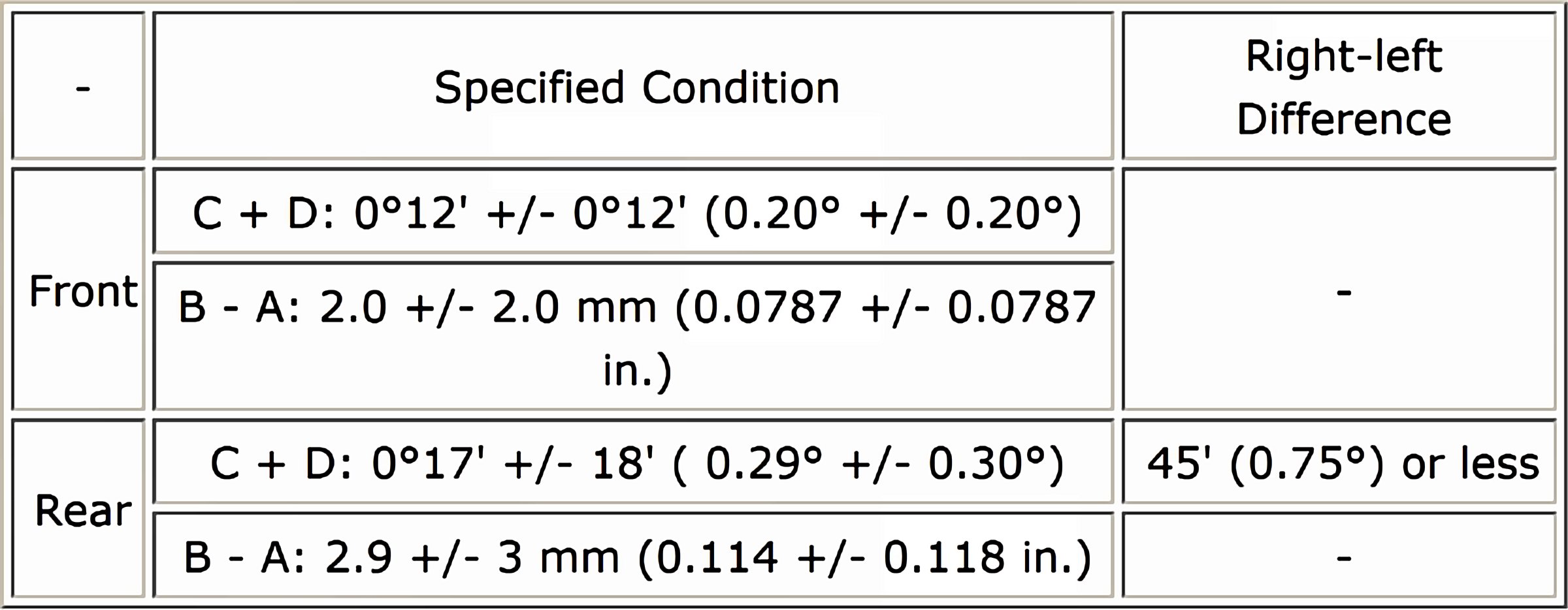 Wheel Alignment Specifications (Unloaded Vehicle)