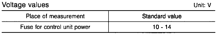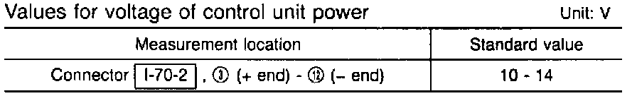 - Voltage is not as specified -> disconnection in harness between battery and fuse, abnormality in battery -> repair harness or inspect battery
