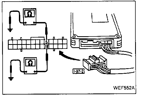 4. Check for insulation and short circuit between the body and terminals (18) and (5) of connector [I-97-2].