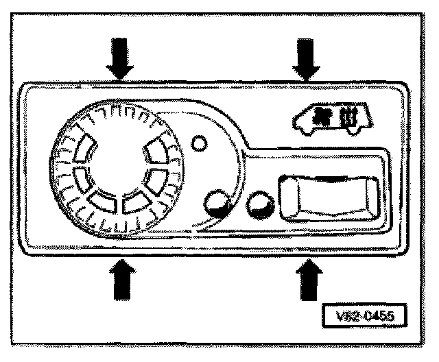 Carefully pry switch at indicated points -arrows- from trim panel with a screwdriver
