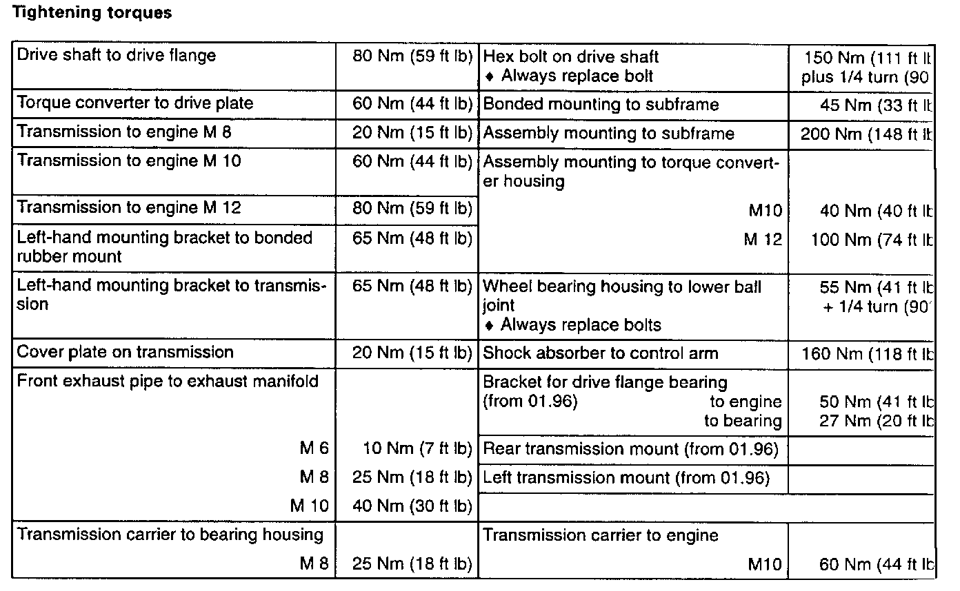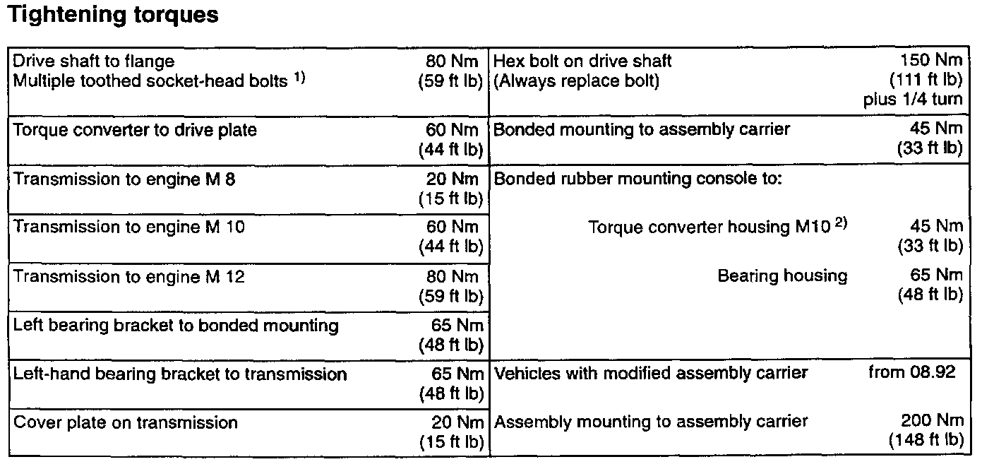 Eurovan Automatic Transmission Torque Specification