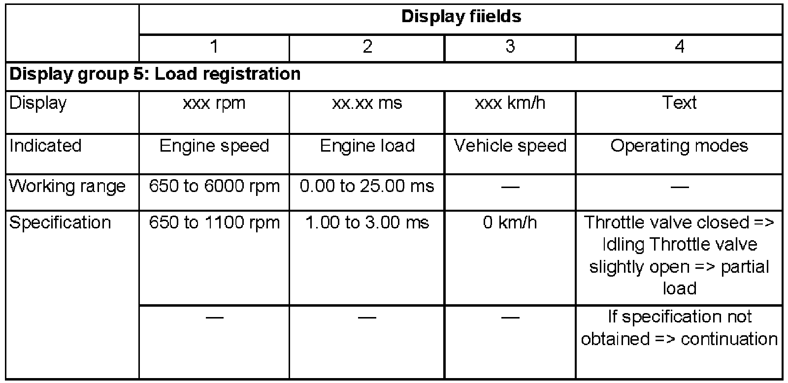 - Check Closed Throttle Position Switch (Display field 4).