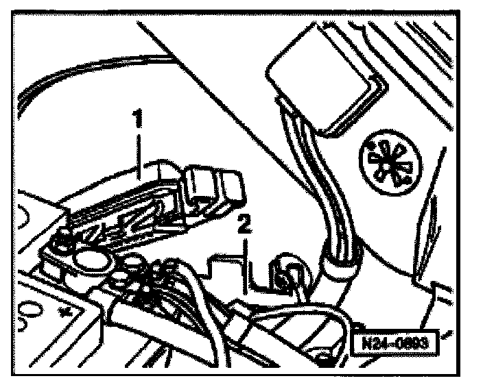 - Disconnect control module connector -1- and connect to replacement control module -2-.