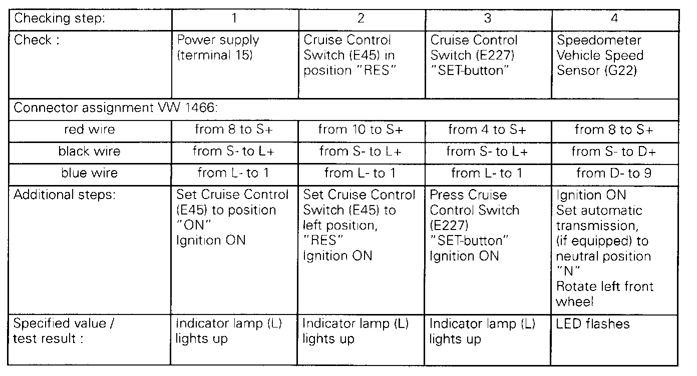 After repairing malfunction, please perform functional test of cruise control system.