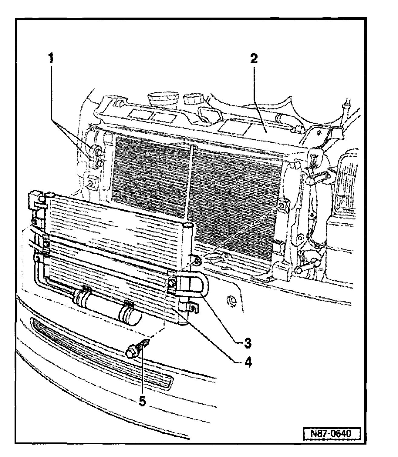 - Where applicable, remove power steering pump cooler lines -3- from condenser, and set to one side (lines remain connected).