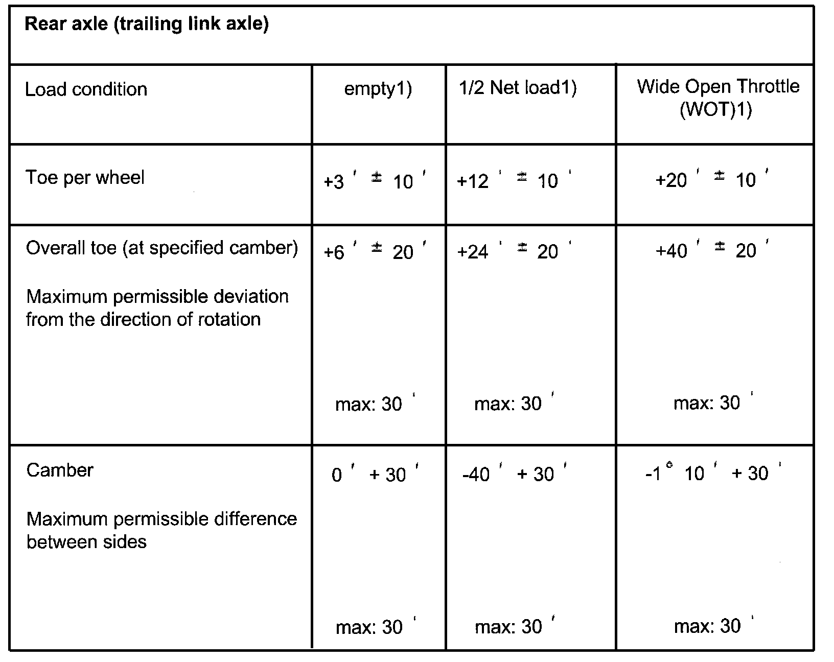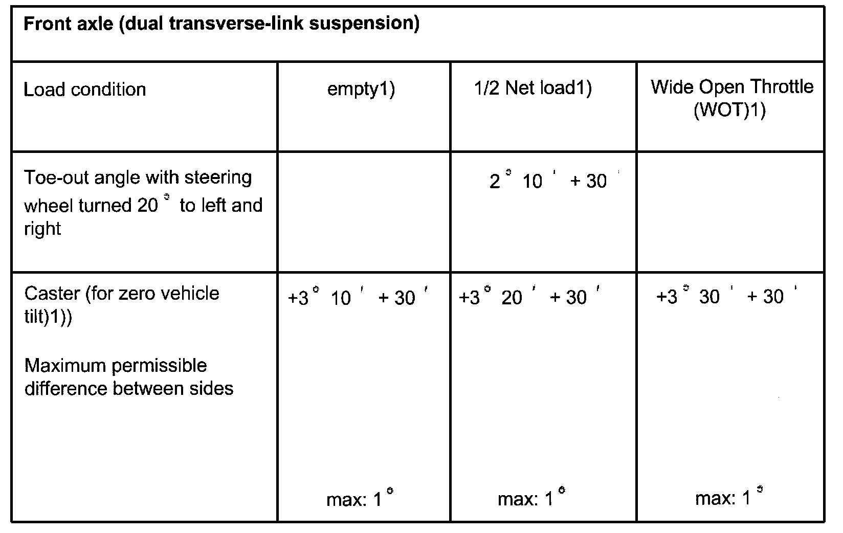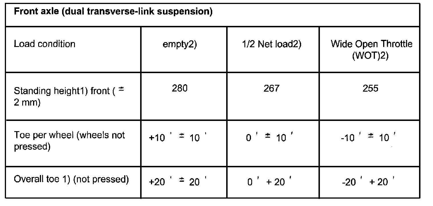 1) If the standing height must be adjusted, the front axle must be aligned completely. After adjusting the standing height, push vehicle forward and backward approx. two meters and then measure standing height once again.