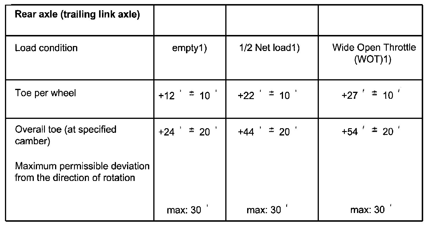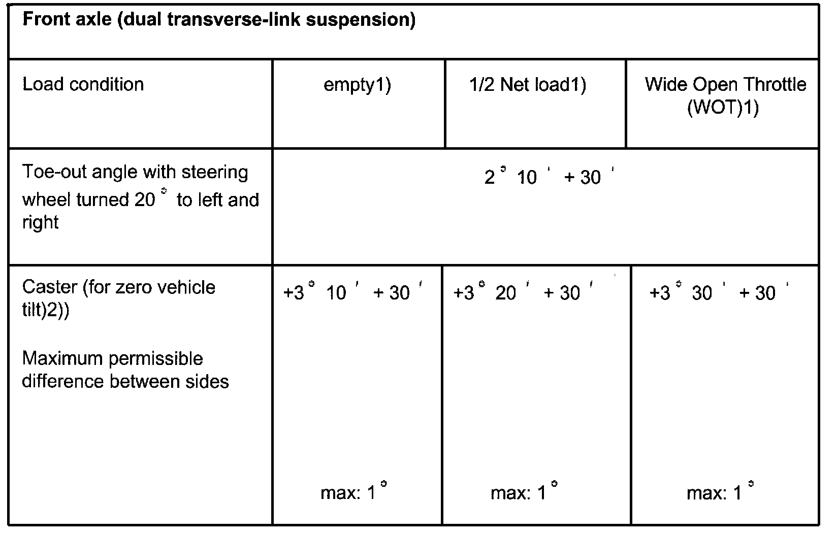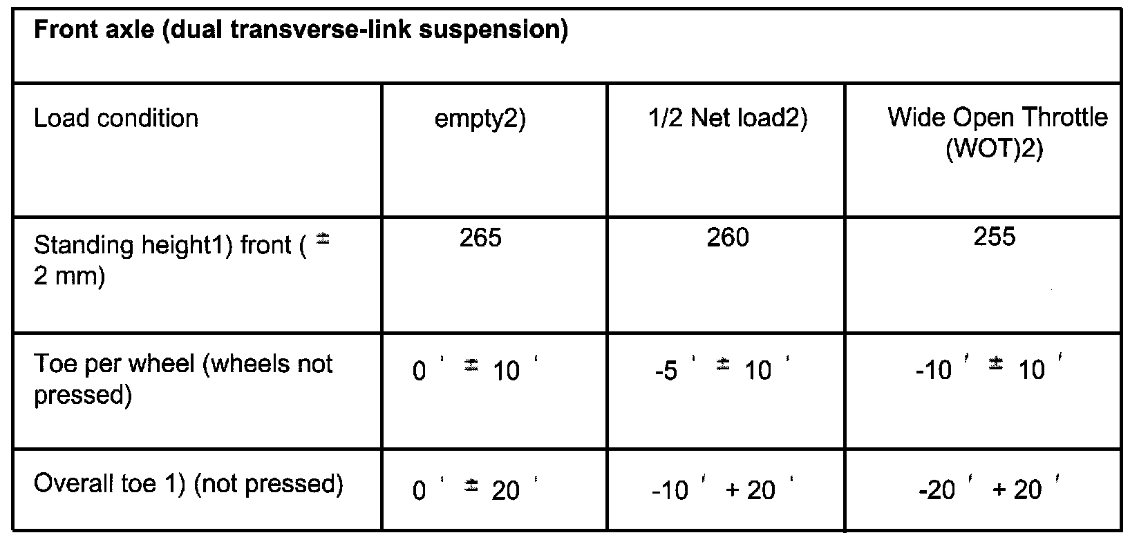 1) If the standing height must be adjusted, the front axle must be aligned completely. After adjusting the standing height, push vehicle forward and backward approx. two meters and then measure standing height once again.