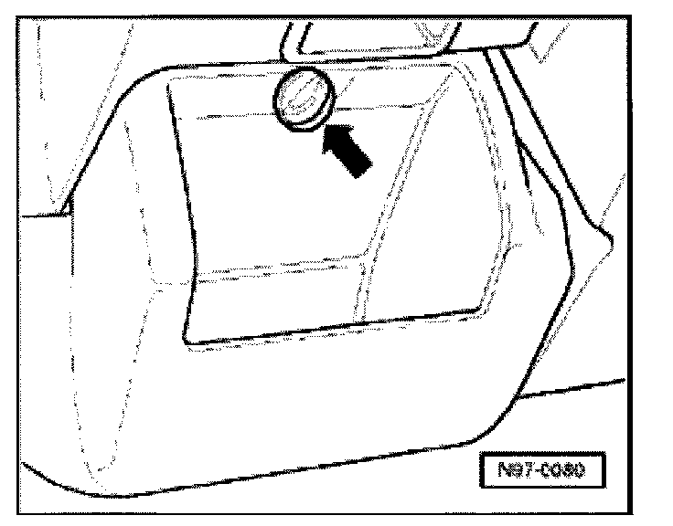 Turn locking knob -arrow- counter-clockwise. open cover, and unhook from instrument panel trim.