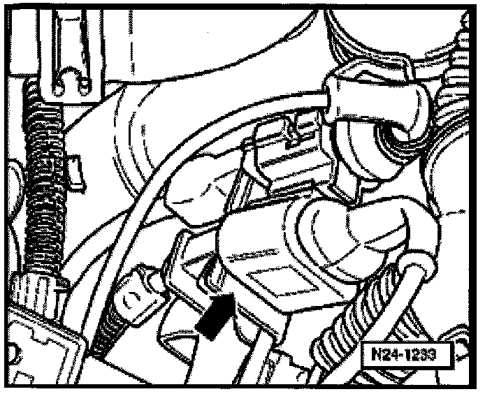 - Disconnect gray 3-pin harness connector (arrow) leading to the engine speed (RPM) sensor -G28-.