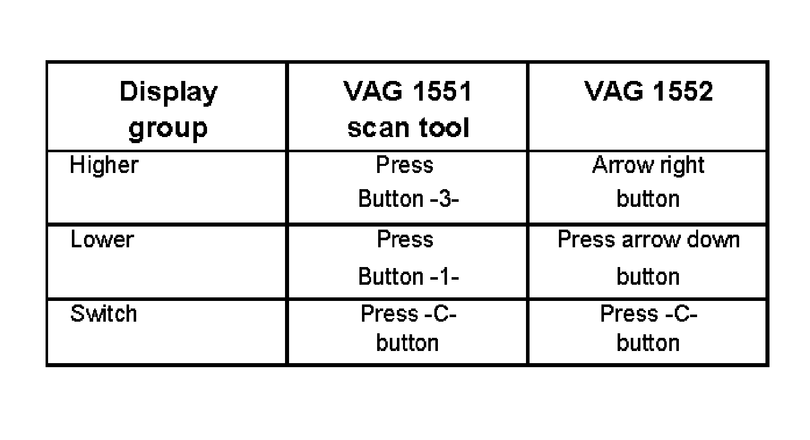 - Press buttons -0- and -8- to select function 08 "Read measuring value block".