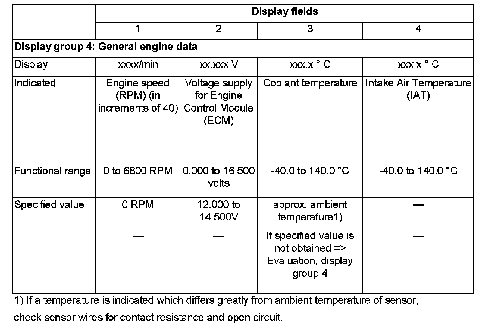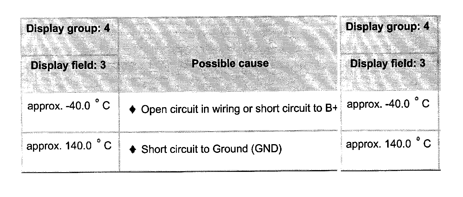 NOTE: If a DTC relating to the Engine Coolant Temperature (ECT) sensor -G62- is stored in DTC memory, the Engine Control Module (ECM) uses a replacement value when starting the engine (starting temperature replacement value). After this, the temperature rises according to a mapping specification stored in the Engine Control Module (ECM). For a warm engine, a fixed replacement value is indicated after a certain period of time. This fixed replacement value is also dependent on the intake air temperature.